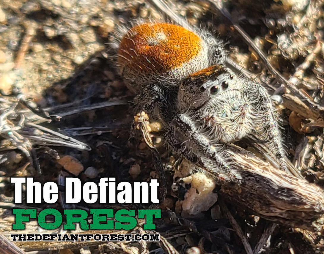 California Red Jumping Spider Light gray hairs and a black ground coloration. The abdomen has a striking red color with a white border, which makes this species a very beautiful jumper.